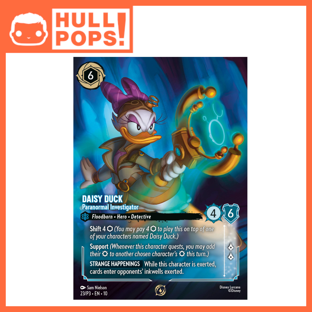All players will receive a limited "Daisy Duck - Paranormal Investigator" Non-Foil Promo Card and a random Lorcana Booster pack for participation.
