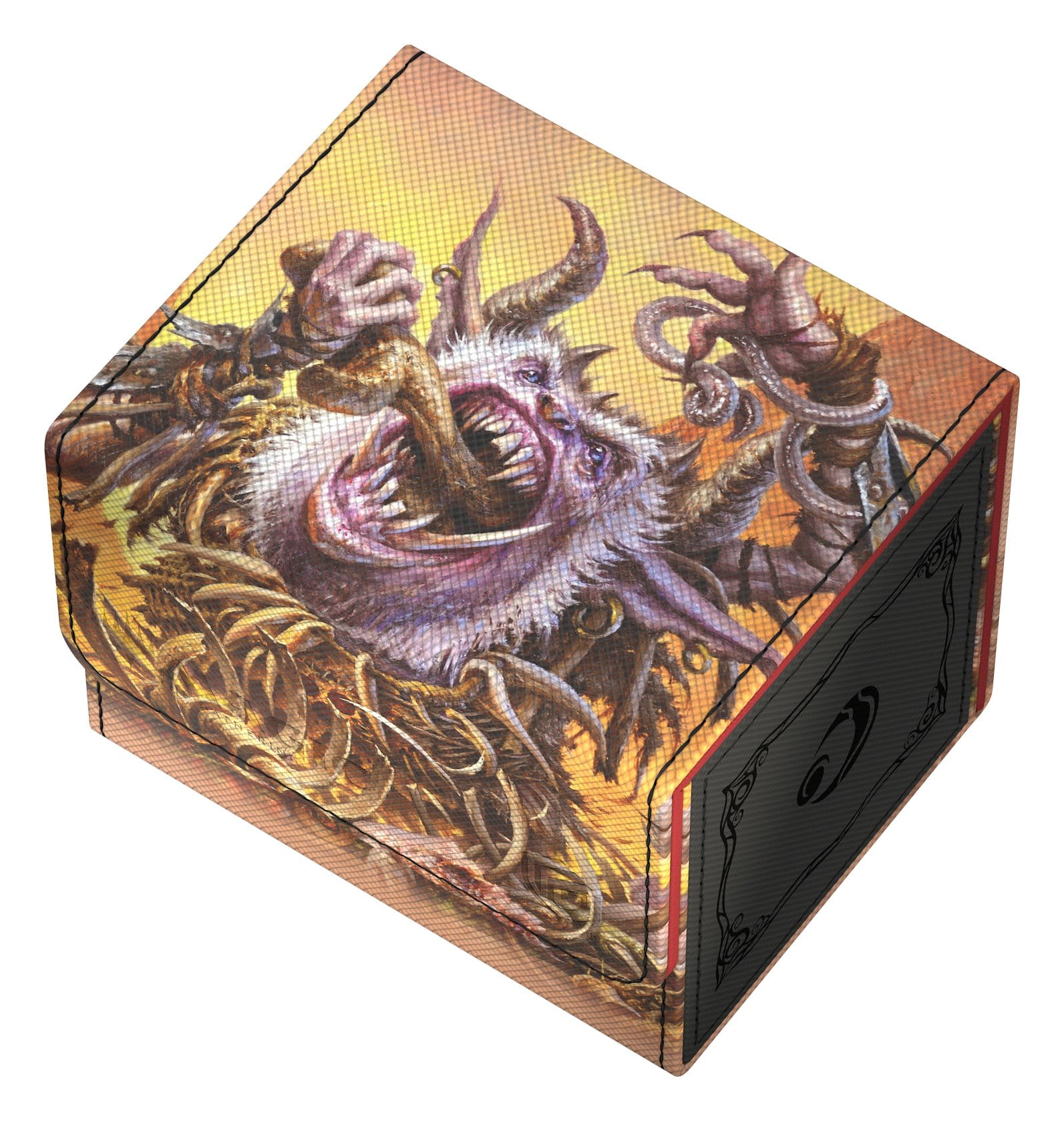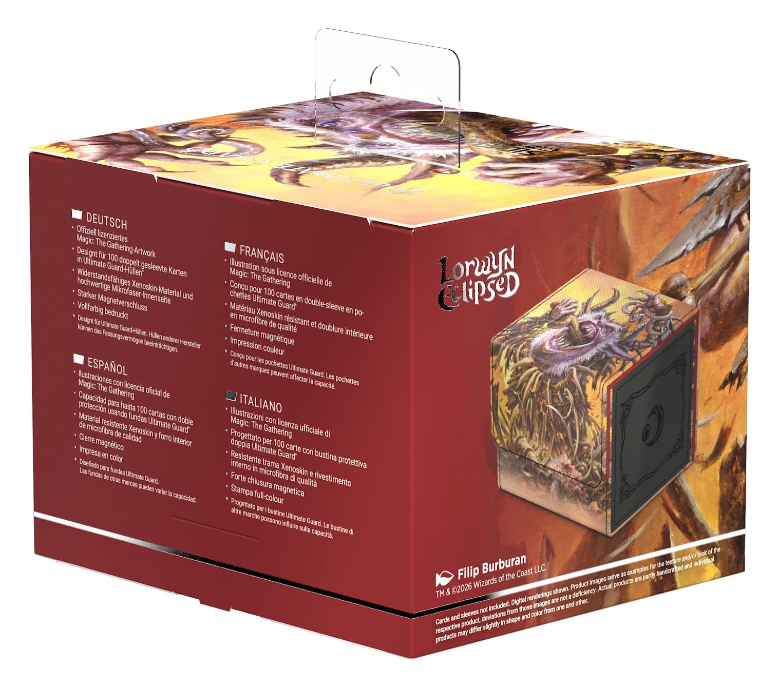 Ultimate Guard's Sidewinder 100+ Xenoskin is a premium Magic: The Gathering deck box offering exceptional card protection with its durable Xenoskin material, microfiber inner lining, and strong magnetic closure—all while providing easy and convenient access to the cards inside. With space for 100 double-sleeved cards in Ultimate Guard sleeves* and printed with officially licensed artwork from Magic: The Gathering's "Lorwyn Eclipsed" set, the Sidewinder 100+ Xenoskin is the perfect MTG deck box for all Magic formats (Commander/EDH, Modern, Standard, etc.). Designed to combine with Ultimate Guard's Omnihive, Superhive, and Smarthive mass storage boxes.The Sidewinder 100+ made from durable Xenoskin material holds up to 100 double-sleeved cards*, which are kept secure in the deck box thanks to a strong magnetic closure and soft microfiber inner lining. The durable, high-quality Xenoskin surface of the Sidewinder is printed in full color with officially licensed artwork from Magic: The Gathering's "Lorwyn Eclipsed" set.
