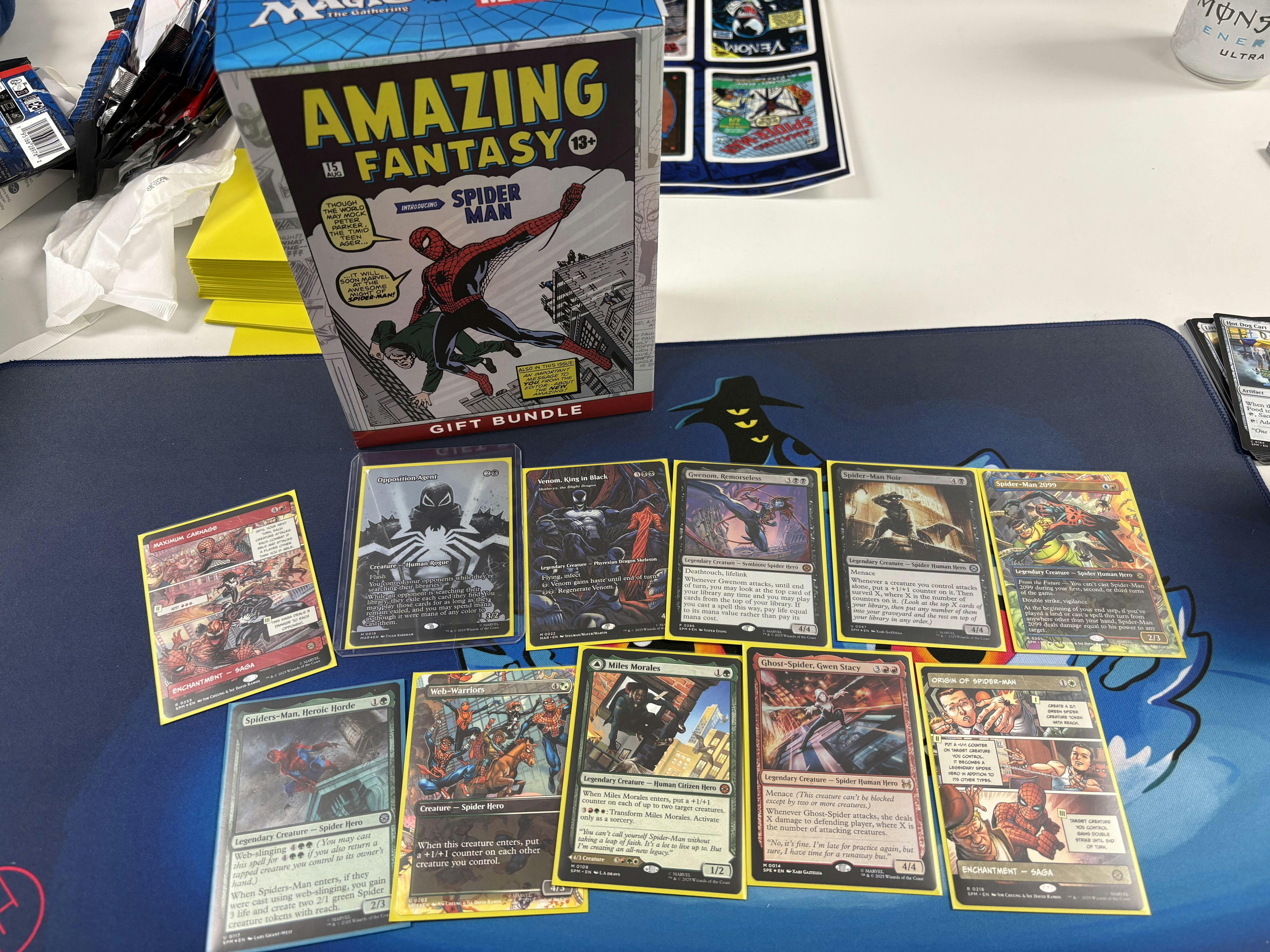 SURPRISE YOUR SPIDER-FAN. Magic: The Gathering | Marvel's Spider-Man Gift Bundle is the perfect present for fans of Magic and Marvel alike! This box is jam-packed with spider-goodness, including a Collector Booster full of Rares, foils, and cool treatments. It’s sure to bring a smile to any fan – especially if that fan is you.